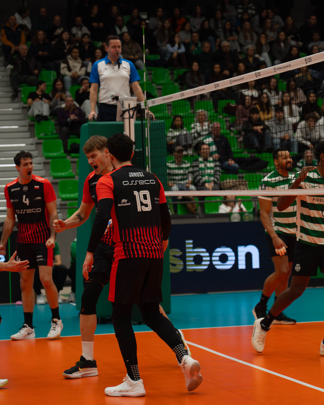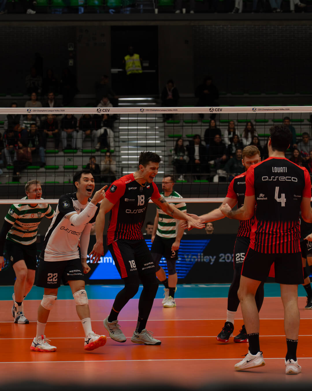 Czwarta odsłona należała jednak do gospodarzy. Sporting szybko zbudował kilkupunktową przewagę i kontrolował przebieg seta, wygrywając go 25:20, a tym samym całe spotkanie 3:1.