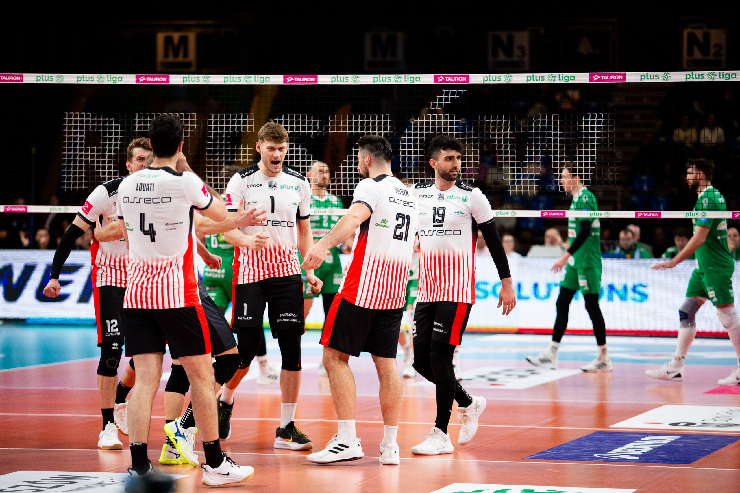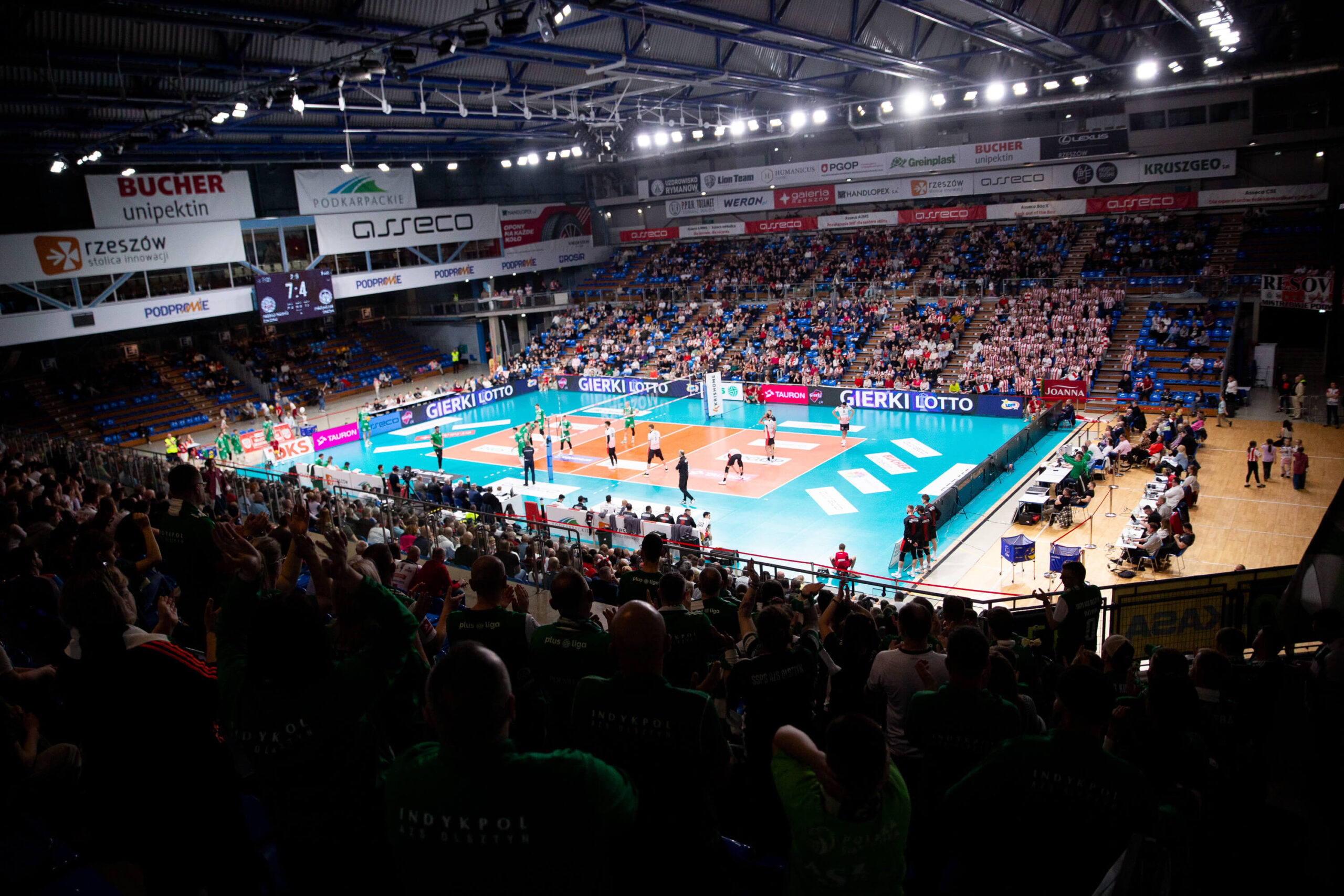 Już od pierwszych akcji gospodarze narzucili swoje warunki gry. Skuteczność w ataku, dobra gra blokiem oraz stabilne przyjęcie pozwoliły szybko zbudować przewagę. Olsztynianie próbowali dotrzymać kroku, jednak Asseco Resovia nie oddała inicjatywy i pewnie zamknęła pierwszego seta.